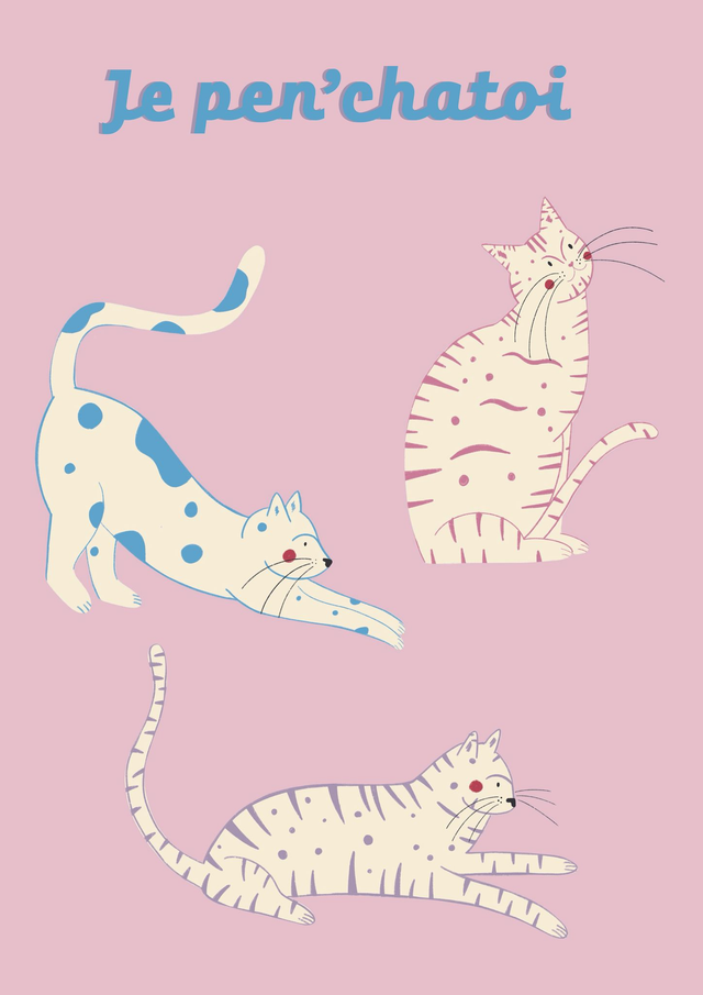 Jolie carte "Je pen'chatoi" au format carte postale (A6), à envoyer pour faire sourire vos proches ou à afficher pour égayer vos journées.